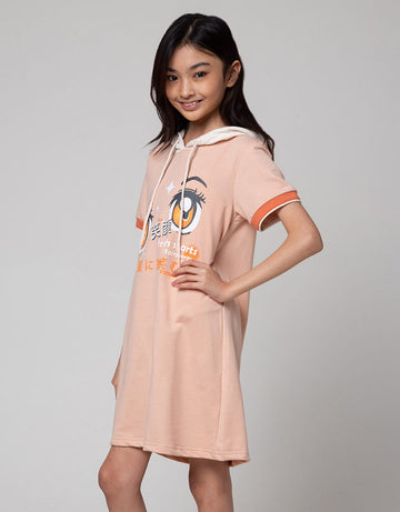 Nevada Short Sleeve Midi Dress Hoodie Print Anime Girl Face